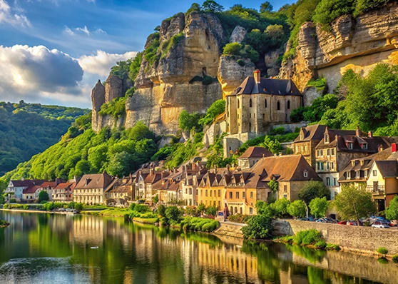 Les forteresses de Castelnaud et de Beynac se font face, sentinelles de pierre surveillant la vallée depuis des siècles. Ces édifices imposants racontent les conflits de la guerre de Cent Ans à travers leurs donjons et remparts.